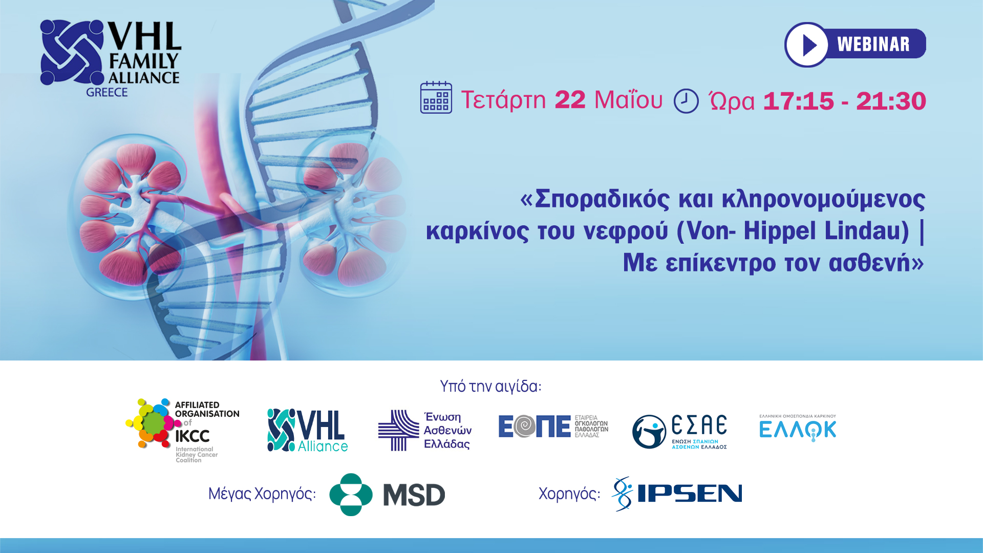 Διαδικτυακό σεμινάριο της VHL Family Alliance Greece για τον καρκίνο του νεφρού...